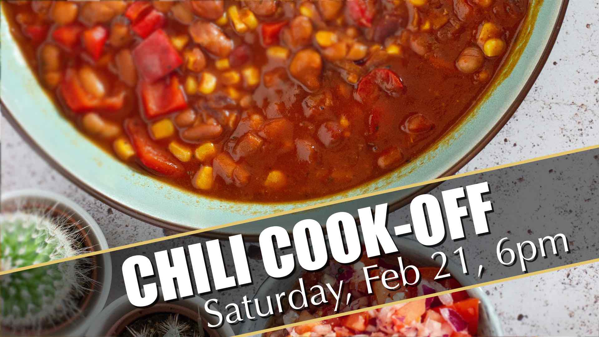 Join us for the Chili Cook-Off, Saturday, Feb 21, 6pm