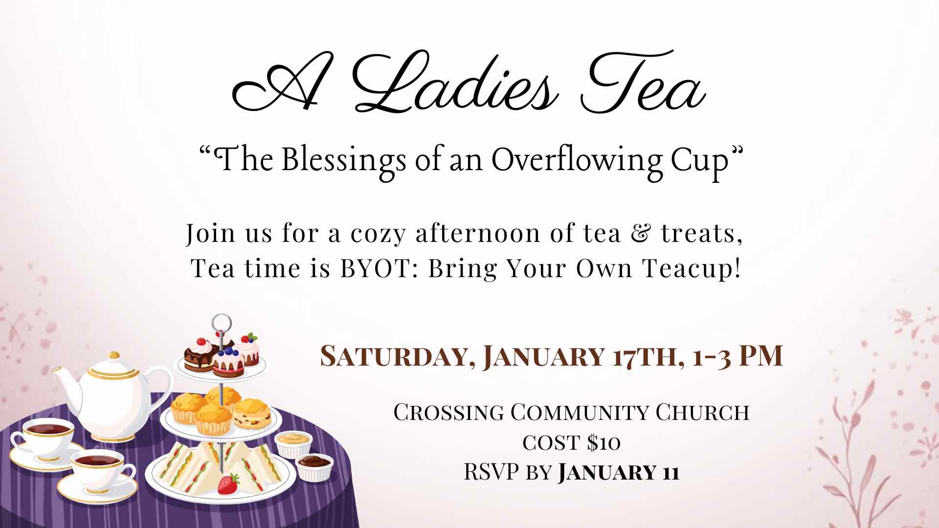 Ladies, come enjoy the blessings of an overflowing cup. Bring your own tea cup and join us for an afternoon of tea and treats! It’s only $10; click below to register by Sunday, January 11.